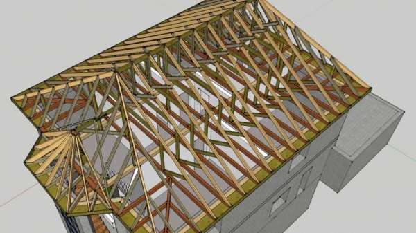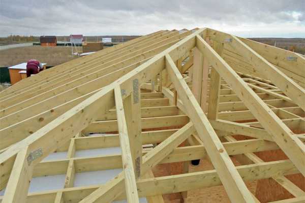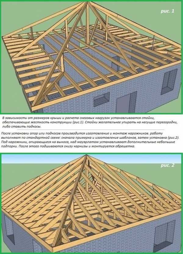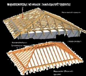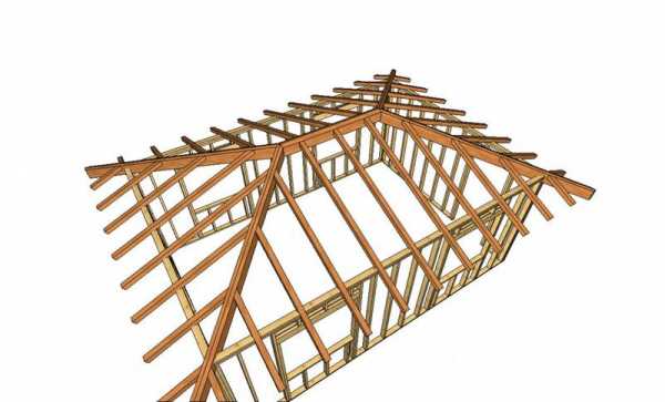 Накосные стропила помещаются на внутренние углы стен. А те, что имеют диагональное расположение — на внешние. Длина таких стропил несколько больше, чем у остальных. Это объясняется тем, что на них приходится очень большая нагрузка.- На накосные стропила будут устанавливаться укорочённые стропила скатов. Они должны состоять из нескольких ног.