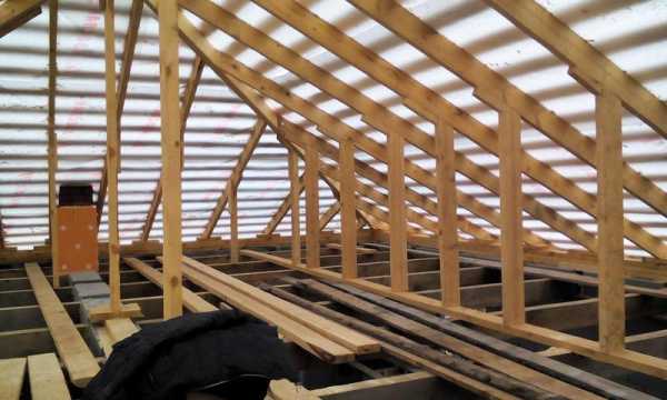 Стропила должны быть закреплены анкерными соединениями, что важно для удержания срыва кровли ветром. Установка стоек позволит сделать нагрузку на балки меньше. Если уклон крыши не очень большой, то потребуется усиление крыши при помощи шпренгельных ферм и шпренгелей. Шпренгель – это брус, который укладывается по обе стороны, и сходящийся наверху углами.