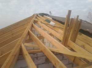 - Короткие стропила. Этот вариант конструкции различается по своей длине. Но располагаться они должны исключительно под одним углом. Чтобы выбрать правильное количество, надо рассчитать площадь всей крыши. Стропила, имеющие короткую форму, надо соединить при помощи одного конца с угловыми ногами стропил. Другие станут упираться об угол здания и к коньку крепиться не будут.