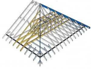 - Коротких стропил различной длины, которые крепятся к угловым деталям под одним и тем же углом.