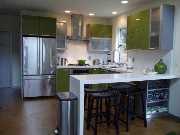 Для Г-образных кухонь стоит выбирать барные стойки небольших размеров