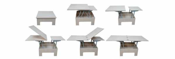 - Стол-трансформер: данная конструкция в собранном состоянии выглядит как обычный журнальный стол, а в разобранном — как полноценный обеденный стол.