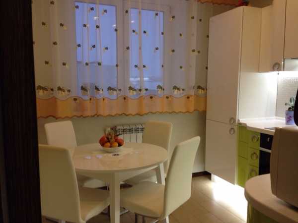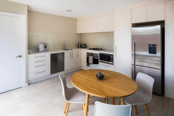Грамотное размещение круглого стола, будет способствовать свободному перемещению в малогабаритном пространстве и беспрепятственному доступу к кухонному гарнитуру, например во время готовки или при подаче еды.