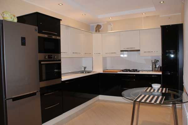 4. Какая конфигурация у кухонного гарнитураИногда форму стола диктует дизайн кухни — как в проекте на фото, реализованном в рамках телепередачи. Площадь кухни составляет 9 кв.м, а в одном из углов находится выступ, от которого невозможно было избавиться. Чтобы замаскировать выступ, дизайнер проекта предложила закруглить кухонный гарнитур, а вместо стола установить круглый остров с духовым шкафом в основании.