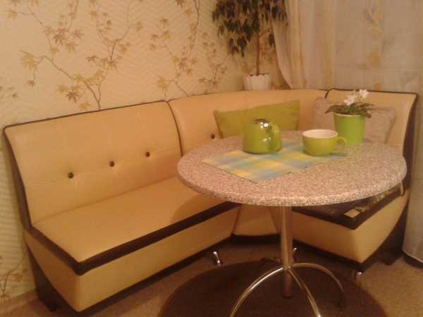 | Круглые столешницы прекрасно комбинируются с угловым диваном или кухонным уголком. С помощью данной мягкой мебели, в сочетании со столом в форме круга, получается рационально использовать угол кухни. |