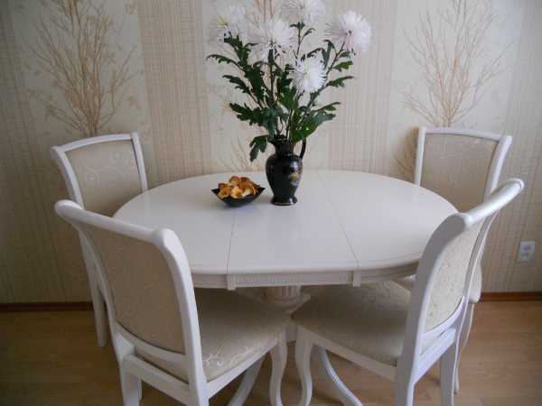 Белый стол в интерьере кухни – наиболее универсальное решение. И в классических, и в современных стилевых направлениях он будет смотреться органично.