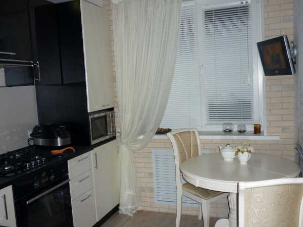 Для маленькой кухни подойдет круглая модель, оснащенная одной ножкой, находящаяся у окна, складывающийся стол, располагающийся у стены или оригинальная и компактная угловая конструкция, прекрасно подходящая для небольшой семьи и предоставляющая, не только максимальную экономию площади, но и очень комфортное повседневное пользование.