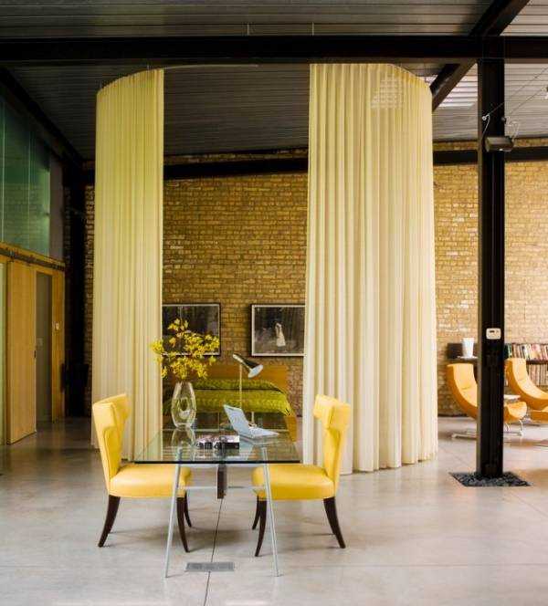 - Шторы вместо стен. Сейчас достаточно популярный вариант, которым многие пользуются для отделения одного помещения от другого.