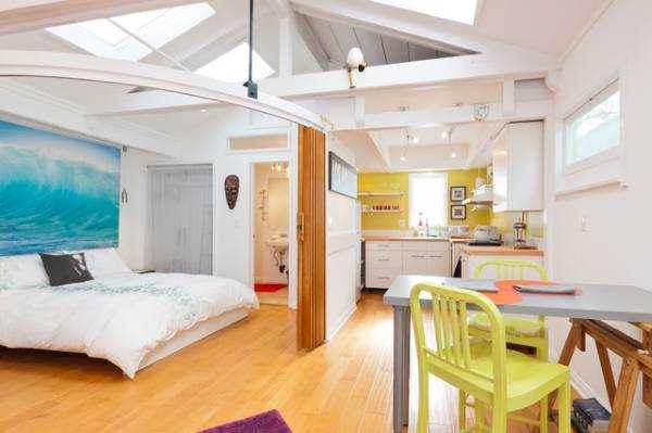 Маленькая квартира может сочетать в себе множество дизайнерских идей. Собственники все чаще максимально используют пространство, например, делают квартиру — студию.