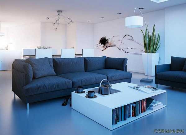 - Минимализм. Этот стиль отлично подойдёт для небольших квартир- студий. Это своего рода классика, которая сводит до минимума все вещи и мебель, используя только основные предметы (диван, столик, ковёр).