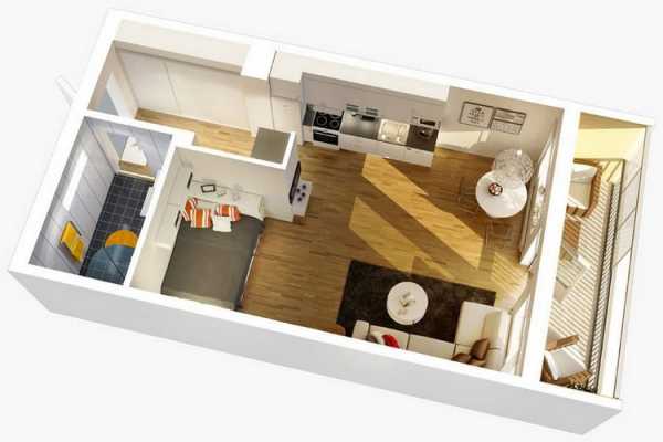 Вид сверху — визуализация всей квартиры площадью 20 кв.м.