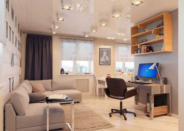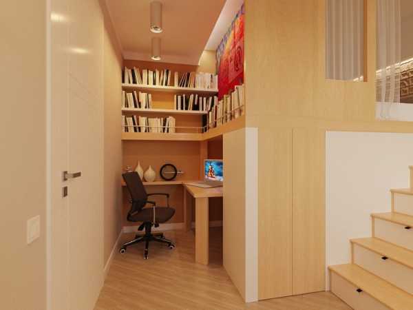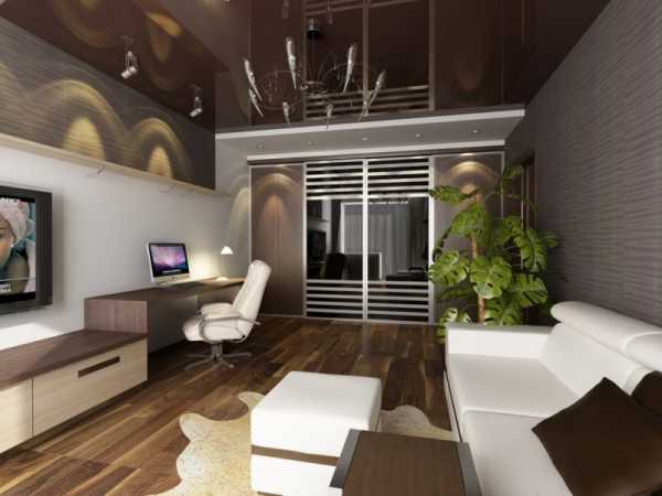 Иногда даже делают такую комбинацию, что спальное место делают под потолком, а снизу размещают рабочую зону. Такой вариант возможен исключительно в тех случаях, когда высота вашего потолка не менее трёх метров.