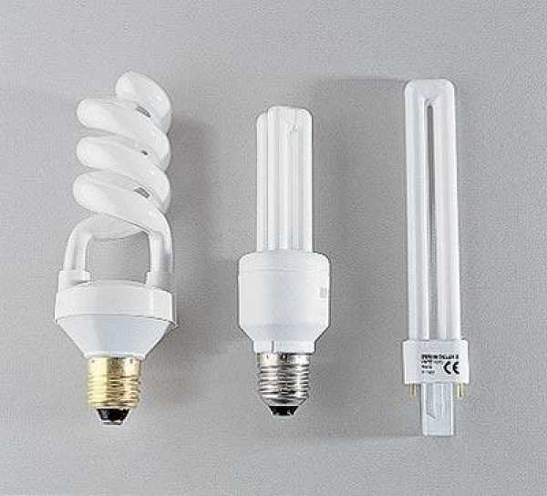 - Энергосберегающие или люминесцентные. С высоким КПД, нагреваются сравнительно меньше, до 50-60 ⁰С, поэтому потребляют энергии меньше предыдущих. Недостатки: стоят дороже обычных лампочек, противопоказано их использование для помещений с высокой влажностью, при низких температурах.