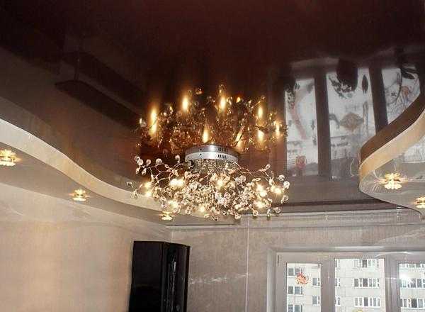 Натяжные потолки двухуровневые фото для зала, готовые идеи