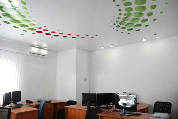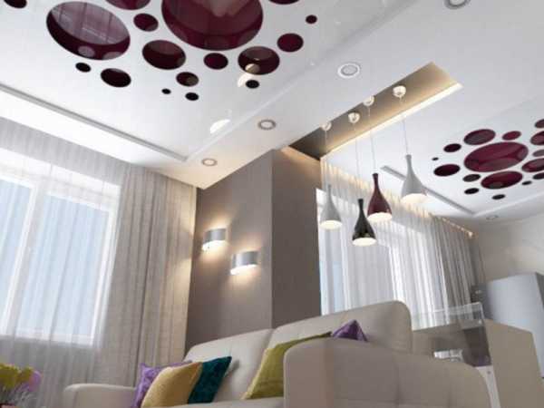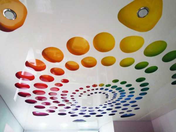 На фото многоцветные натяжные потолки
