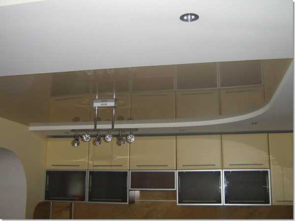 Фотографии натяжного потолка на кухне
