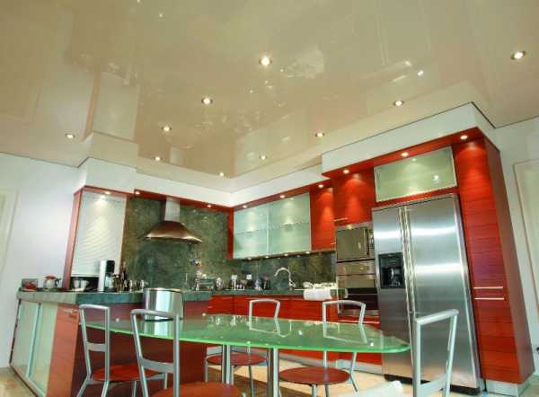 Варианты натяжного потолка для кухни