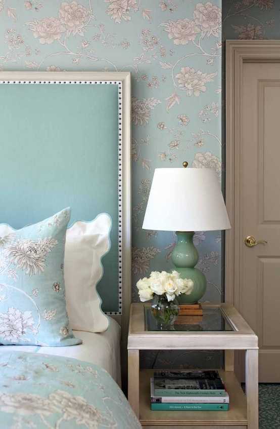 Слишком пестрые цветочные обои можно комбинировать с однотонными. Например, одна стена в комнате может быть в цветок, а три оставшиеся – нежно-зелеными, в тон стеблям и листьям.