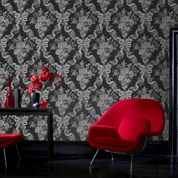В таких интерьерах довольно часто применяются покрытия для стен с вьющимся, мелким цветочным принтом или замысловатым растительным вензелем. Приемлемы бордовый или красный цвета с вкраплением черного или золотого.
