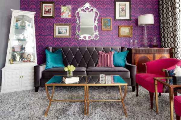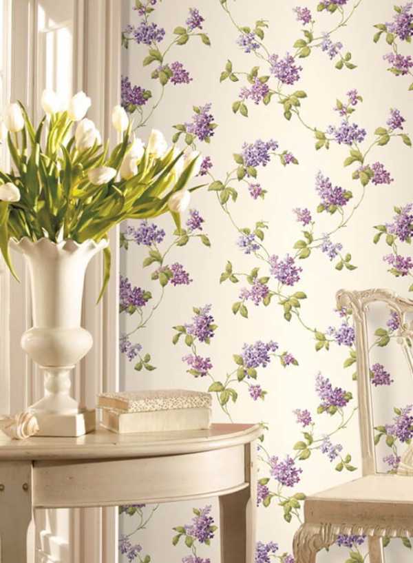 Эти фиолетовые цветы придают комнате загадку. Чтобы не затемнить пространство, на обоях не должен присутствовать крупный принт.