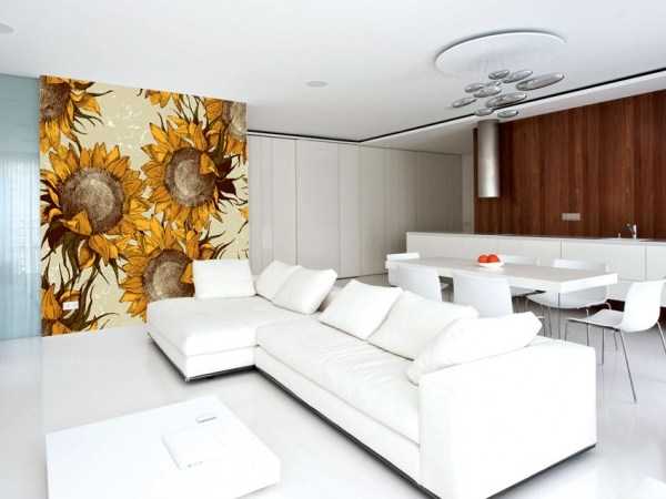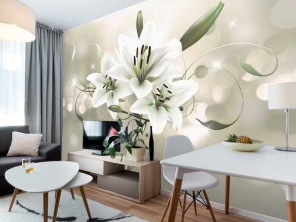 Совет! Не можете определиться с расцветкой? Обратите внимание на фотообои, где вы сами можете выступить в роли дизайнера. Оригинально и ярко будут выглядеть фотообои с огромным цветком в гостиной или над изголовьем кровати в спальне.