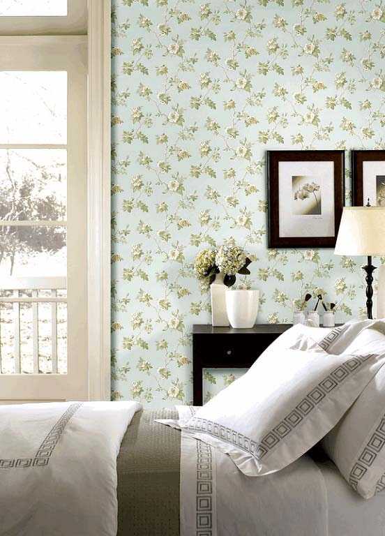 Включает в себя не яркие цвета и мелкий рисунок. Ими могут быть садовые цветы в пастельных тонах. Цветочные обои обязательно дополняются другими элементами декора, например обивкой мебели, вазами, диванными подушками или домашними цветами в горшках.