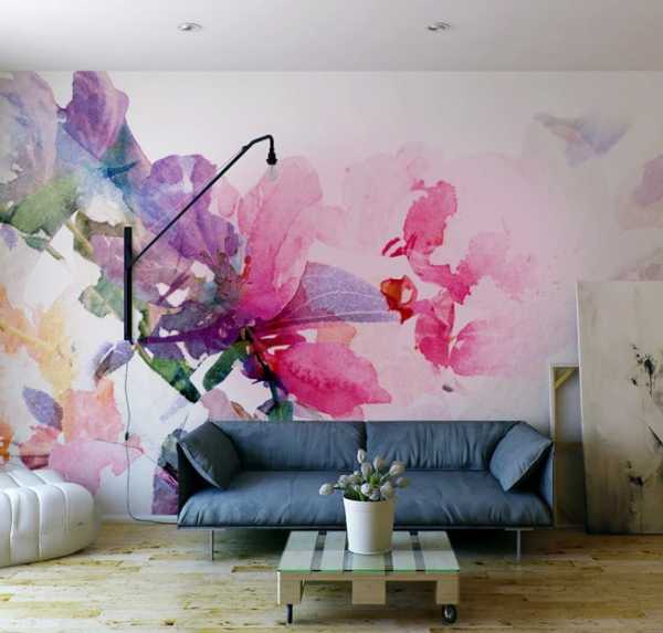 Эффект акварель завораживает и привлекает взгляды. Оформив одну из стен этими яркими нарисованными цветами, такая композиция определенно не останется незамеченной.
