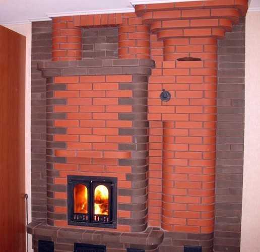 Печь для отопления можно выложить самостоятельно из кирпича. Самым простым является вертикальный дымоход, но с ним тепло уходит наружу. Если его сделать змеевидным, КПД значительно возрастет, и помещение начнет основательно прогреваться.
