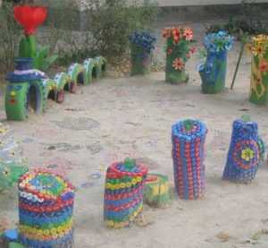 Вот так приблизительно они будут выглядеть на фото. Какие ещё поделки можно сделать из пластиковых бутылок своими руками? Посмотрите на фото, быть может, Вам что-то понравится из предложенного и Вы сделаете это у себя в саду или на улице.