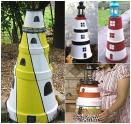 Из обычных цветочных горшков можно сделать удивительные домики для птиц, или скворечники. Для того чтобы сделать домик своими руками, нужны будут 2-4 цветочных глиняных горшков для использования на улице, водостойкая краска, кисточка. Горшки переворачиваем вверх дном и ставим одни на другой. Наверху можно установить фонарик. Домик из горшков можно раскрасить в любой цвет, нарисовать двери и окошки. Если в горшках имеются трещины или дырки, это даже к лучшему. Его оформляем как окно. Домик будет красиво смотреться на площадке для детского сада , во дворе частного дома. На картинках вы можете увидеть варианты дизайна таких домиков.