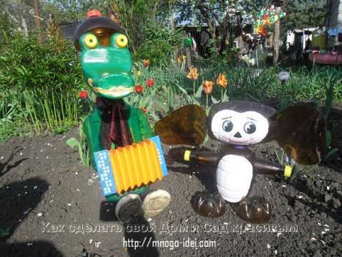 Как сделать свой сад уютным и оригинальным? Как удивить своих знакомых и друзей? Наши мастера умеют делать необычные поделки для сада из обычных пластиковых бутылок, колес, старых тазиков и т.д. Фигурки для сада можно сделать своими руками из различных материалов, пластиковых бутылок, старых покрышек, одноразовой посуды и т.д. Из пластиковой бутылки можно сделать любые фигурки для сада, которые легко красятся и долго сохраняют свою форму.