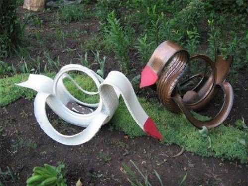 Чтобы создать оригинальный арт объект для вашего сада, совсем необязательно бежать в магазин за покупкой материала. Свои новые творения можно смастерить и без них. Оглянитесь вокруг. Ведь наверняка в вашем хозяйстве есть то, что вы уже давно не используете по той или иной причине.