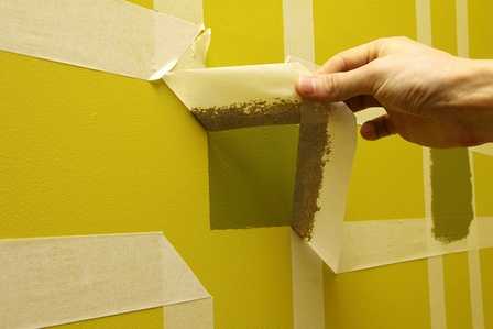 Для этого, после нанесения одного цвета по предполагаемой границе крепиться малярная лента. Затем наносится другой цвет. Скотч удаляется только после полного высыхания слоев.