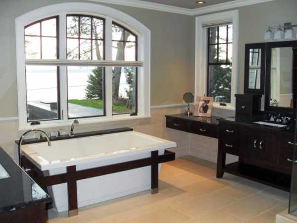 Относительно цвета, то в последние тенденции интерьерной моды демонстрируют приверженность публики к непринужденным и естественным тонам. Лаконично, но насыщенно смотрится всегда актуальная классика — черно белая ванная. Впрочем, в интерьере, как и в любом другом искусстве, вполне можно выйти за поставленные границы, дополнив ванную роскошным оливковым цветом окрашенных стен.