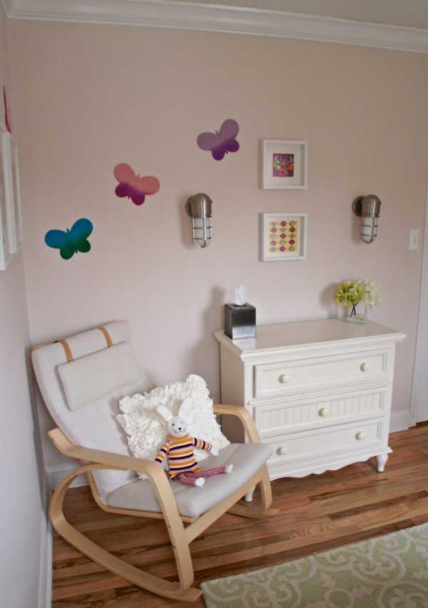 На фото детская для девочки с бабочками из бумаги на стене.