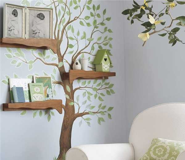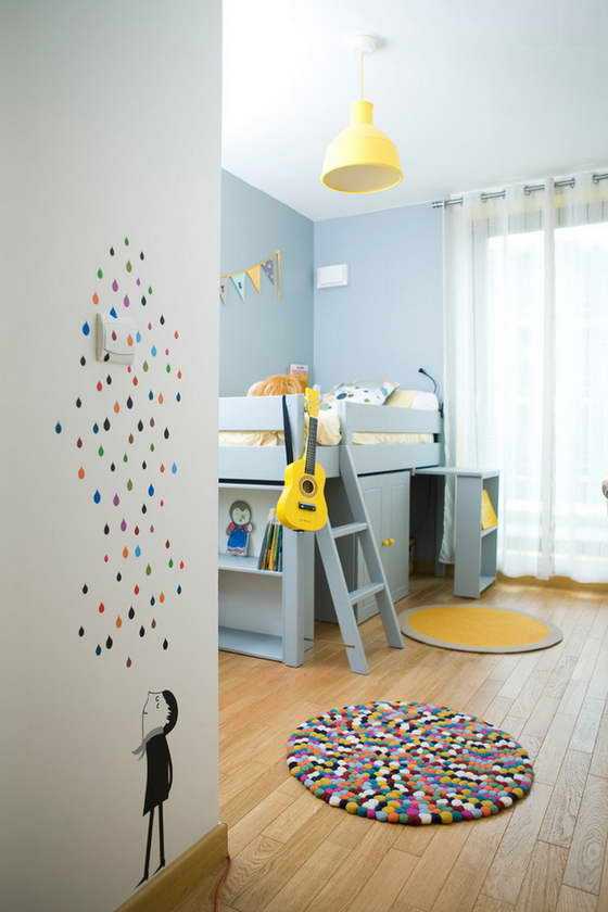 Простые яркие или сложные художественные рисунки, одиночные элементы или небольшие композиции, расположенные по всему пространству или только частично, добавят изюминку в общее стилевое решение детской.
