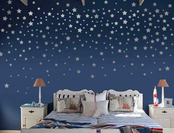 Покрывало со звездами отлично сочетается с изображением на стене