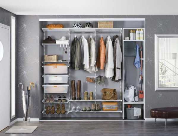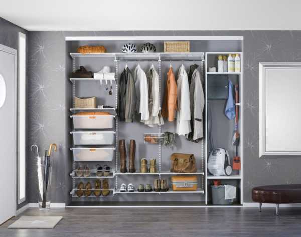 Важно! При устройстве каркасной гардеробной в прихожей стоит учитывать способность всех элементов выдержать вес тяжелых вещей.