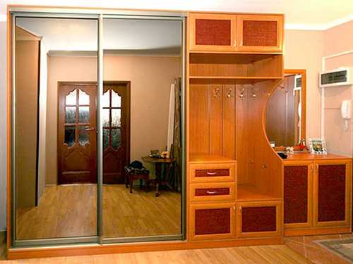 - компактность — в маленькой прихожей сложно установить предметы корпусной мебели, имеющие строгие геометрические формы. Поэтому монтаж модулей встроенного типа является единственным вариантом обустройства небольшого пространства;