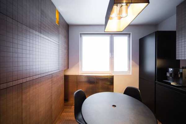 Квартира находится в Москве, площадь кухни составляет всего 10 м2. Дизайнеры Анастасия Чернышова и Сергей Колчин рассматривали комнату не только с точки зрения функциональности. Специалисты считают, что кухня – это пространство, где царят законы алхимии. Холодильник символизирует зиму, огонь можно включить всего лишь с помощью кнопочки, а вещество может изменить состояние в зависимости от установленной температуры.