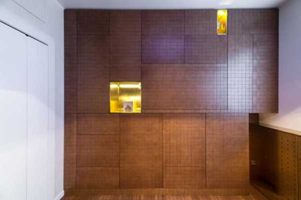 10. Минималистичная кухня с золотыми нишами