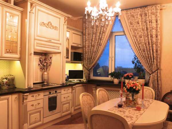 Как видите, форма углового гарнитура, как и подоконника, не ограничена прямыми линиями. Плавные изгибы обезопасят вас от острых углов, они более приятны для глаз и прекрасно сочетаются с такими же силуэтами бытовой техники. Но, если хотите, такую кухню можно оформить и в классическом стиле.