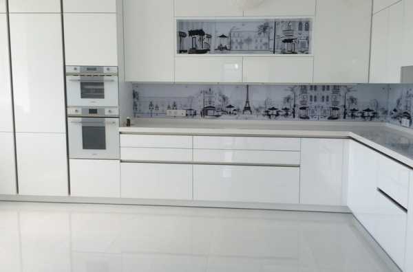 Если вам не нравится полностью белая кухня, фасады приукрасит милый и романтический декупаж. Разбавит монотонность и яркий, цветастый фартук. Но, согласитесь, и черно-белая выглядит шикарно и аристократично.