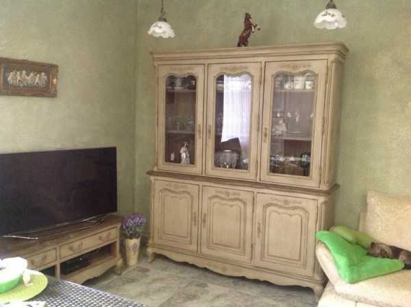 Расписные блюда можно расставить на специальных полочках на стенах, или же красиво выставить их в стилизованном под старину серванте.