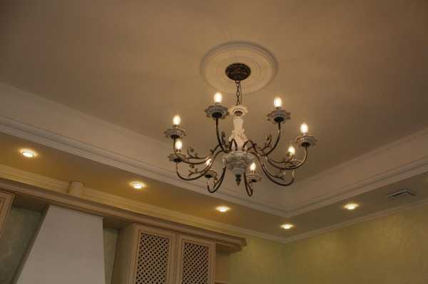 Необходимо тщательно продумать каждую мелочь: обустроить центральную люстру, которая будет служить основным источником света, а также организовать дополнительное освещения, используя для этого точечные светильники.