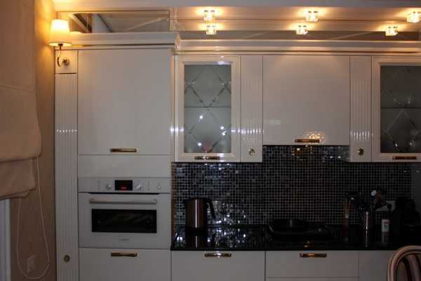 Точечные светильники рекомендуется спрятать под верхними фасадами гарнитура.