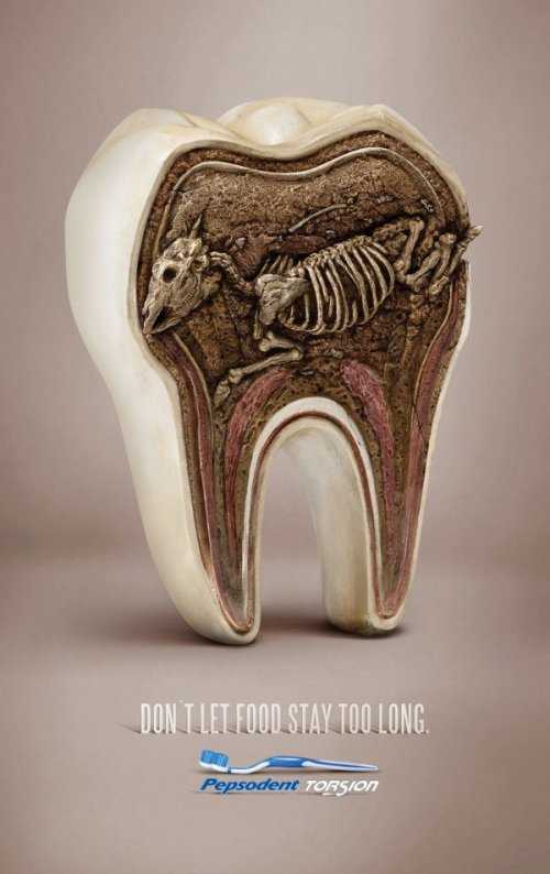 Реклама зубных щёток Pepsodent: «Не оставляйте еду во рту надолго».