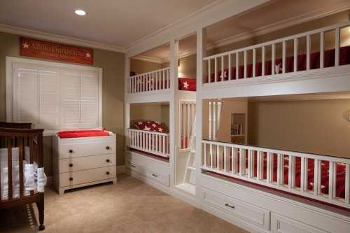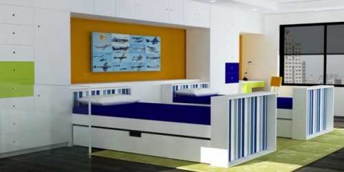 Удачная планировка, радующая двоих детей. Сделать комнату средних размеров визуально большой поможет:
