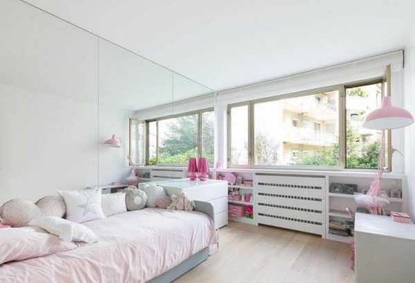 Родители обычно считают, что девочки – существа более нежные, чем мальчики, и стремятся набросать на бумаге комнату в розовых тонах, с принцессами на стенах и рюшами на подушечках. Но забывают почему-то, что девочки тоже любят озорничать, поэтому ремонт детской для девочки почти ничем не должен отличаться от комнаты для мальчика. Можно выделить больше места под игрушки, распределив их по всей комнате.