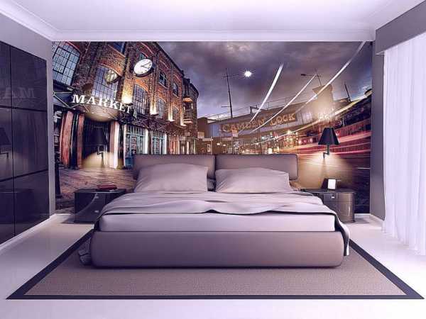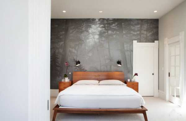 Стильные и оригинальные фотообои — превосходный приём для маленькой спальни. Подберите для своей опочивальни изображение умиротворяющего леса, гор либо динамичного мегаполиса, и комната зрительно станет свободней.